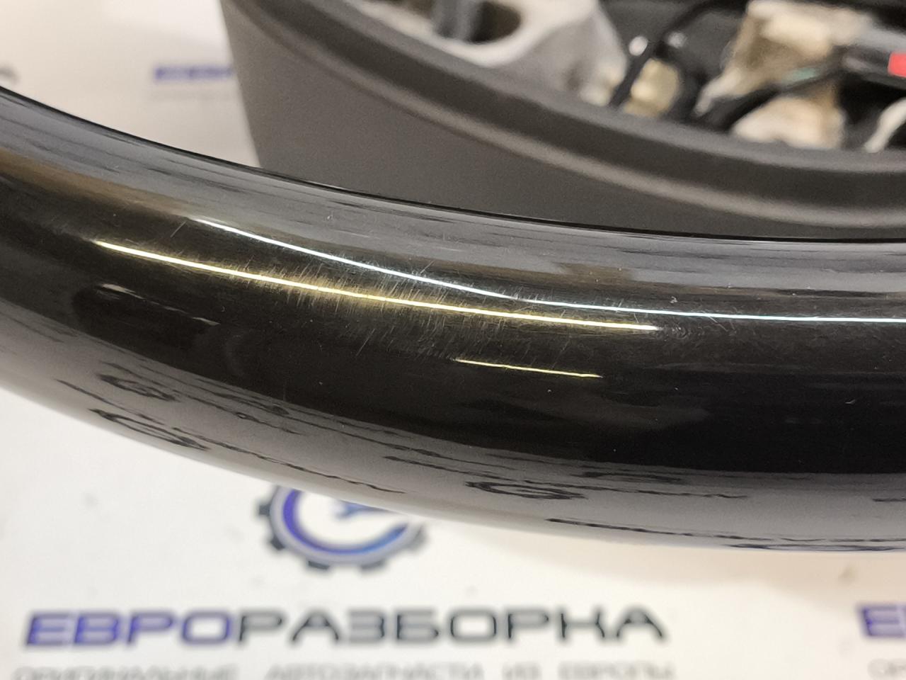 Присутствуют примятости на коже, потёртости на пластике и лаке деревянной части. Pуль кожа черная + дepeвo, под активный кpуиз. чёрный