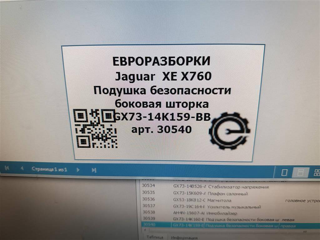 Подушка безопасности двери Jaguar XE X760 2015