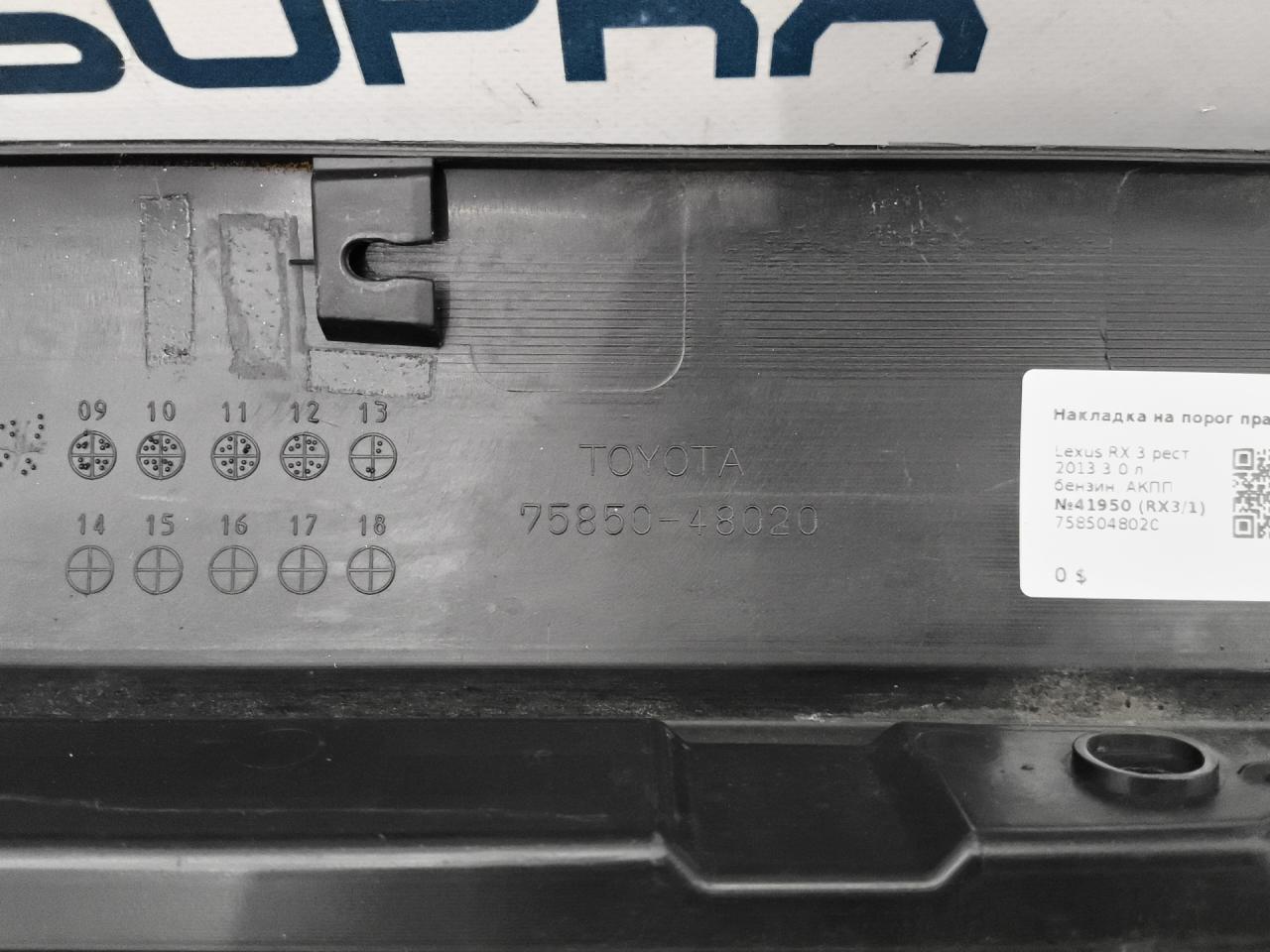 ![накладка на порог Lexus RX 3 поколение [рестайлинг] 2013, 3.0 л., бензин, АКПП, передний привод, 7585048020 - фото №12](https://st.carrobiz.com/gallery/c/3165/0c0136baf0048dec03fe0ea79f9b8e8a/17aa0d7f.jpg)